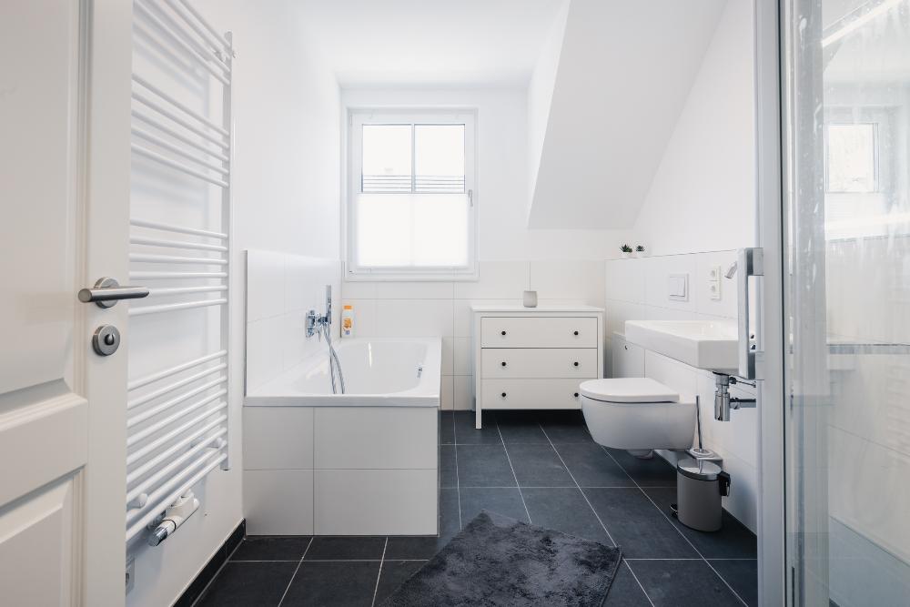 - Badezimmer: mit Badewanne, mit Dusche, mit Fenster